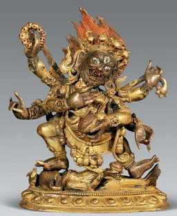 藏传佛教认为大黑天是毗卢遮那佛(或称为大日如来)降魔时呈现出的忿怒相。有六臂、四臂、二臂玛哈嘎拉三种。
